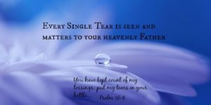 “You keep tract of all my sorrows. You have collected all my tears in your bottle. You have recorded each one in Your book” ~Psalm 56:8 Driving to clinic one …
