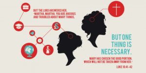 “Martha, Martha,” the Lord answered,” you are worried and upset about many things, but few things are needed-or indeed only one. Mary has chosen what is better, and it will …